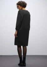 Deze knielange jersey jurk van Street One maakt indruk met zijn effen kleur en Stretch viscosemix voor maximale bewegingsvrijheid. De ronde halslijn en lange mouwen met elastische boorden maken de look af – perfect voor kantoor, vrije tijd of een dineetje. Een veelzijdige stylingpartner voor je garderobe.