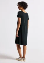 Deze effen polojurk van Street One voor dames heeft een figuurflatterende geribde textuur en een moderne midilengte. De klassieke polokraag met decoratieve knoopsluiting geeft de jurk een sportieve, vrouwelijke touch. De zijsplitten benadrukken de comfortabele pasvorm en maken de jurk ideaal voor warme dagen.