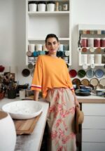 Een 5‑pocket rok in soepele stretchgabardine die meteen tempo maakt. De asymmetrische tailleknoop geeft een speelse draai, de verborgen voorsplit houdt het vlot en vrouwelijk. Sporty chic met een luxueus gemak: een rok die met je meebeweegt en elke look een frisse schwung geeft.