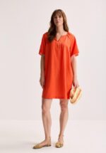 Altijd goed: solo, als jurk, hemd of nonchalante zomerjas. Deze oversized blikvanger met kraag, speelse revers, metalen Améline‑knopen en royale zakken pakt elke dag vanzelf de spotlight Korte, wijde mouwen en subtiele splitjes geven lucht en vrijheid. Een seizoenlang stuk dat je aantrekt en niet meer uittrekt.