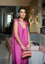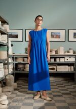 Preppy krijgt hier een nieuwe betekenis: een biokatoenen jurk die speels met overhemdstreepjes speelt. De verborgen knopen, frisse rugplooi en subtiele zijsplitjes geven hem die nonchalante chic die je meteen omarmt. Licht, luchtig en heerlijk comfortabel—alsof je in één beweging klaar bent voor stijl én spontaniteit.
