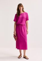 Zomer in één zwaai: deze losse rok in zachte linnen‑look mixt comfort met cool. De elastische tailleband met aansnoerkoord en hoge zijsplitten geven je een luchtige, swingende vibe. Flashy, relaxed en ideaal om je basics een frisse twist te geven. Een easygoing favoriet voor zonnige dagen.