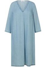 Slip-on denim jurk van EMILIA LAY met een paneel bij de V-hals en 7/8 mouwen. Allround comfort in een losvallende stijl met een brede plooi aan de voorkant van de halslijn en naadzakken. Bijzonder zachte, vloeiende stof van 100% lyocell met een lichte wassing. Lengte in maat 42 ca. 102 cm. Deze denim jurk is machinewasbaar. wasbaar tot 30°. chloorbleken niet mogelijk. koud strijken. niet chemisch te reinigen. drogen in de droger niet mogelijk. 40, 42, 44, 46, 48, 50