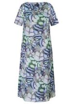 EMILIA LAY jurk met V-hals en 3/4-mouwen. Fashionfavoriet heerlijk comfortabel, zomers, luchtig en trendy tegelijk Gemaakt van prachtig gedrapeerde stof met een patchprint in harmonieuze natuurlijke kleuren, waardoor elke jurk uniek is. Casual en modern model met een brede plooi aan de voorkant bij de halslijn. 100% viscose. Lengte in maat 42 ca. 102 cm. Deze jurk is machinewasbaar. wasbaar tot 30°. chloorbleken niet mogelijk. warm strijken. chemische reiniging. drogen in de droger niet mogelijk. 40, 42, 44, 46, 48, 50, 52, 54