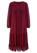 Jurk van EMILIA LAY met een elastische boord aan de lange ballonmouwen, doorgestikte biezen bovenin en korte knoopsluiting. Een ultiem fashion-piece van transparant mesh van 100% polyester losjes vallend en chic zwierig met een rok in stroken en volants. Door een jersey-onderjurk van 100% viscose wordt de jurk ondoorzichtig. Lengte in maat 42 ca. 126 cm. Machinewasbaar. fijnwas tot 30°. chloorbleken niet mogelijk. koud strijken. chemische reiniging, veilig. drogen in de droger niet mogelijk. 40, 42, 44, 46, 48, 50, 52, 54, 56