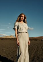 In combinatie met het bijpassende jasje Dunas ontstaat een look die tegelijk krachtig en verfijnd is. Een rok die niet schreeuwt om aandacht, maar die je wel meteen ziet. -