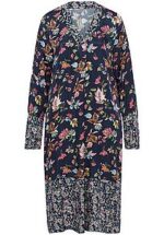 Jurk van MYBC met lange mouwen. Modefavoriet met kleurrijke, gestileerde bloemmotieven Losjes vallend model met blinde knoopsluiting tot de iets hogere taille, naadzakken en een etagerok. Elke jurk is uniek. 100% viscose. Lengte ca. 100 cm. Machinewasbaar. fijnwas tot 30°. chloorbleken niet mogelijk. warm strijken. niet chemisch te reinigen. drogen in de droger niet mogelijk. 40, 44, 46, 48