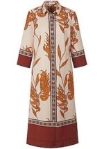 Jurk van Peter Hahn met 3/4-mouwen en twee zakken. Modetopper voor vele gelegenheden en stylingvarianten. Te dragen als lichte A-lijn jurk met of zonder riem of als modieuze chasuble op een zomerbroek. Hemdblousemodel met doorlopende knoopsluiting van soepel materiaal met bladerprint en borduursels op de boorden. Zonder riem. Van 83% viscose, 17% polyamide. Lengte ca. 120 cm. Machinewasbaar. fijnwas tot 30°. choor- en zuurstofbleken mogelijk. warm strijken. chemische reiniging. drogen in de droger niet mogelijk. 38, 40, 42