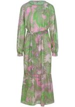 Jurk van UTA RAASCH flatteus, licht getailleerd model met een V-hals. Met achter beginnende opstaande kraag, die aan de voorkant tot een casual kraagstrik gebonden wordt. De lange raglanmouwen hebben een manchet met split met paspel en 2 knopen. De deelnaad in de taille en bij de zoom accentueert het figuur. De naaddunne ritssluiting maakt eenvoudig aantrekken mogelijk, terwijl de strikceintuur de taille extra benadrukt. Het lijfje is zorgvuldig gevoerd, wat voor aangenaam draagcomfort zorgt. Een extra highlight is de print all-over in verschillende grootten, die iedere maxi-jurk uniek maakt. 100% viscose. Lengte ca. 125 cm. Deze jurk is machinewasbaar. fijnwas tot 30°. chloorbleken niet mogelijk. warm strijken. chemische reiniging. drogen in de droger niet mogelijk. 36, 38, 40, 42, 44