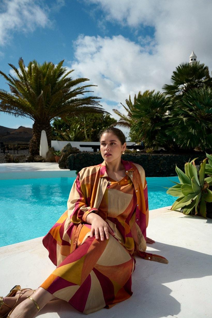 Deze satijnen A-lijnjurk speelt met kleur en vorm in een print die subtiel naar Paul Klee knipoogt. De soepele stof volgt je bewegingen, terwijl de elegante tailleplooien en onzichtbare binnenelastiek je silhouet verfijnen. De open ronde hals en stijlvolle sleutelgatsluiting achteraan maken hem onweerstaanbaar