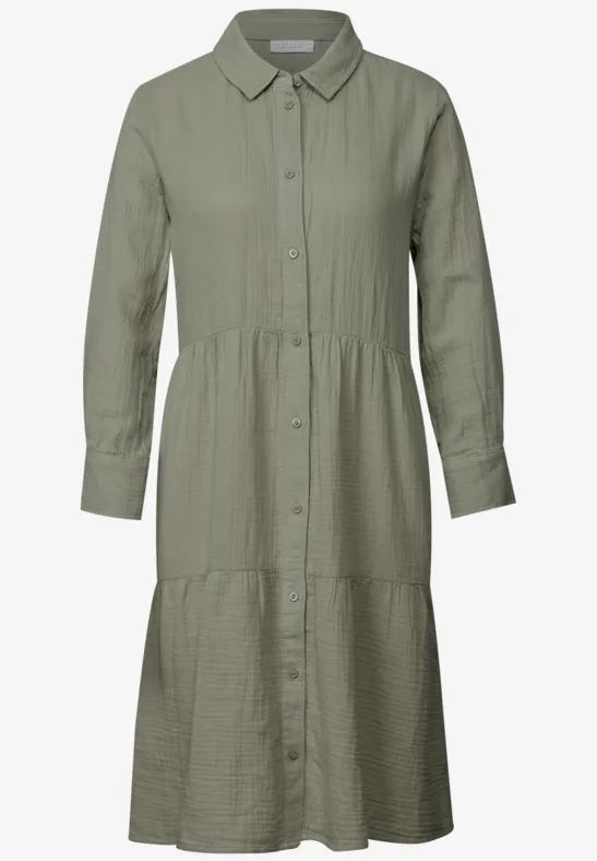 Door de volants is deze blousejurk van Street One Studio voor dames een modieuze blikvanger voor je zomerse looks. De knielange mousseline jurk heeft een overhemdkraag, lange mouwen met manchetten en een doorlopende knoopsluiting. Hij is gemaakt van puur katoen en heeft een hoog draagcomfort.