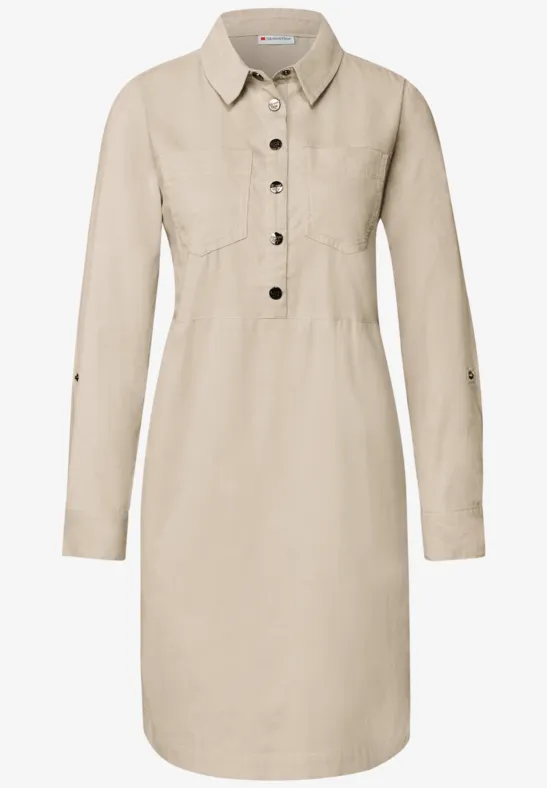 De Street One corduroy jurk voor dames combineert vrouwelijke nonchalance met gezellige charme. De zachte corduroy stof van puur katoen voelt aangenaam zacht aan en is comfortabel om te dragen. Met een overhemdkraag, decoratieve knoopsluiting en omgeslagen mouwen is deze knielange jurk een stijlvolle metgezel voor ontspannen looks.