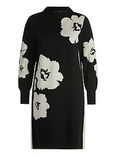 Gebreide jurk van BETTY BARCLAY met opstaande kraag en lange mouwen. Gemaakt van zacht, vormvast tricot met XL-bloemen ingebreid in de mouwen en voorpand, en zijstrepen voor een slankmakend effect. 55% viscose, 30% polyester, 15% polyamide. Lengte ca. 95 cm. Deze gebreide jurk is machinewasbaar. speciale fijnwas tot 30°. chloorbleken niet mogelijk. koud strijken. chemische reiniging, veilig. drogen in de droger niet mogelijk. 36, 38, 44, 46