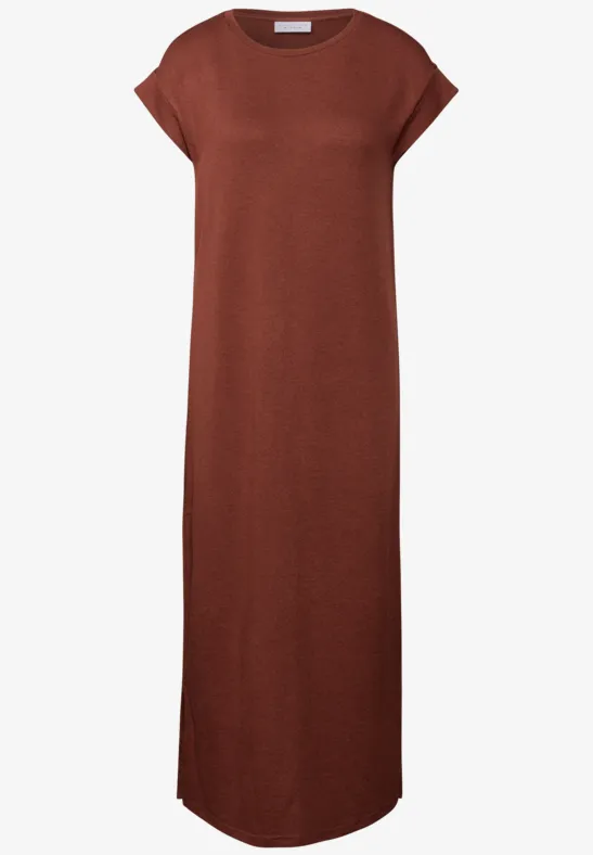 Met zijn strakke ontwerp en ronde halslijn is deze midi-jurk van Street One Studio een veelzijdig stuk voor vrouwen. Het mouwloze silhouet en de zijsplitten voegen een moderne touch toe. De viscosemix met stretch voelt comfortabel aan op de huid.