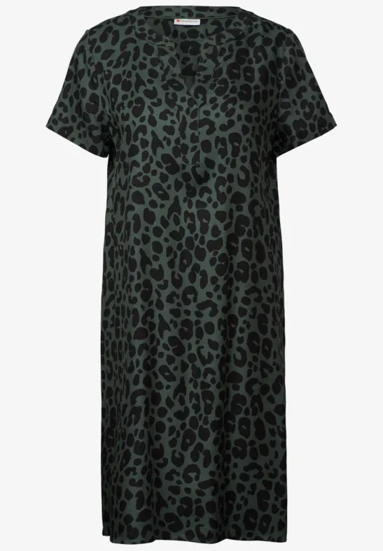 Deze tuniekjurk van Street One voor dames heeft een abstract luipaardpatroon. Korte mouwen en een gespleten hals zorgen voor een zomerse flair, terwijl de lichtgewicht viscose stof deze zomerjurk comfortabel maakt om te dragen.