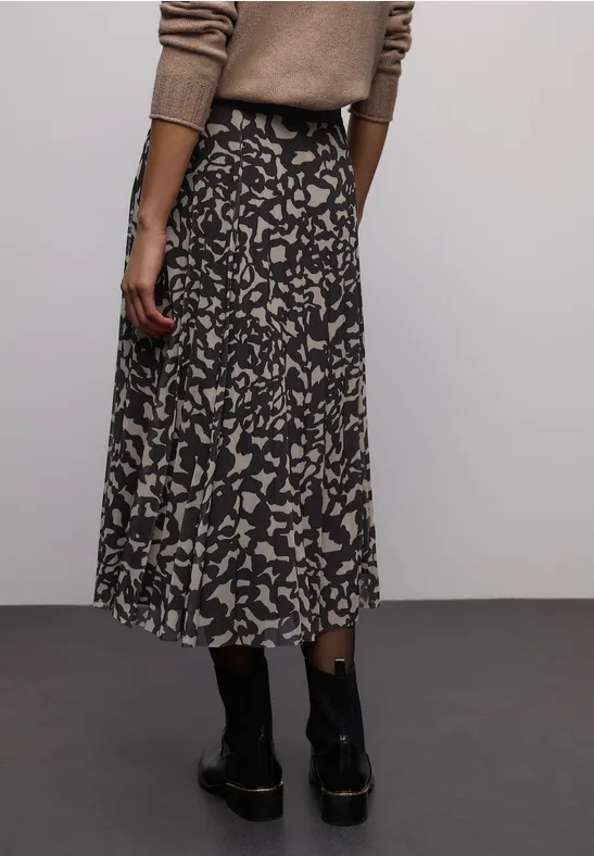 De plooirok van Street One heeft een grafisch patroon en een semi-transparante mesh look. De Stretch tailleband in de Mid Waist zorgt voor een comfortabele pasvorm en een vrouwelijk silhouet. Ideaal voor stijlvolle outfits met een bijzondere flair.
