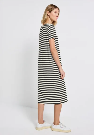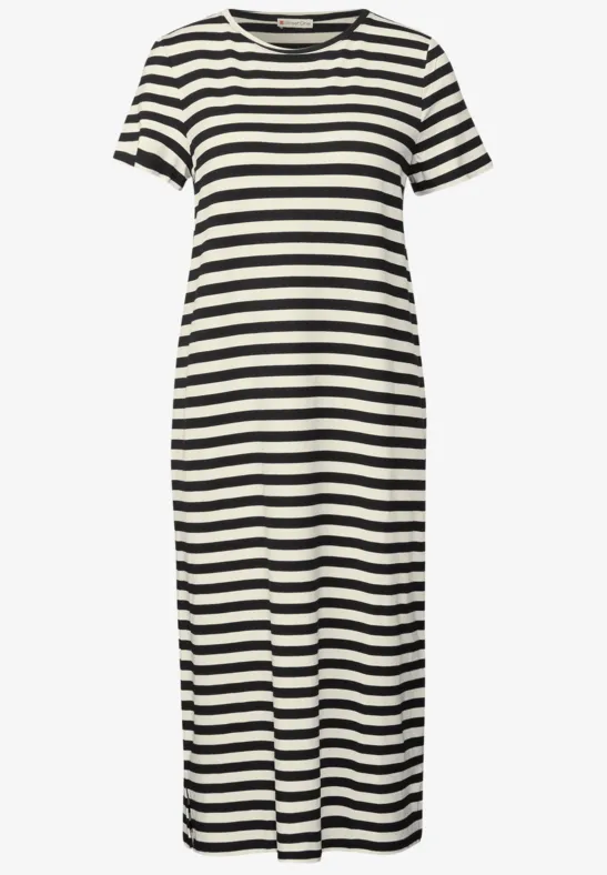 Dit gestreepte Shirt van Street One voor dames is ongecompliceerd en onmisbaar voor zomerse looks. Het knielengte model, de ronde halslijn en de korte mouwen maken het de ideale metgezel voor ontspannen looks. De viscosemix met stretch zorgt voor een comfortabel gevoel, terwijl de zijsplitten een moderne touch toevoegen.