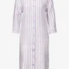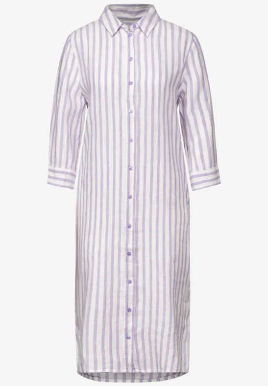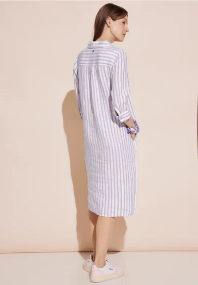 Het tijdloze design van de gestreepte linnen jurk van Street One voor dames heeft lange mouwen met manchetten, een klassieke kraag en een knooppas. De steekzakken opzij bieden praktische opbergruimte, terwijl de zijsplitten in de zoom zorgen voor bewegingsvrijheid. Deze jurk is een elegante keuze voor allerlei gelegenheden en verleent je look een stijlvol tintje.