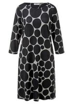 Jersey jurk van PETER HAHN met 3/4-mouwen. Bijzonder comfortabel, flatteus voor het figuur en heerlijk ongecompliceerd Een gemakkelijk te onderhouden kledingstuk voor elke dag in een iets uitlopend model met zakken in de zijnaden. Door het opdrukken van stippen in verschillende groottes is elke jurk uniek. Van 96% viscose, 4% elastan. Gecertificeerd volgens Standard 100 by OEKO-TEX®. Lengte ca. 100 cm. Machinewasbaar. fijnwas tot 30°. chloorbleken niet mogelijk. warm strijken. chemische reiniging. drogen in de droger niet mogelijk. 36, 38, 40, 42, 44, 46