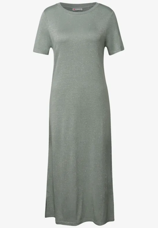 De Street One Shirt jurk voor dames voegt glitterdetails toe aan je alledaagse look. De ronde hals en korte mouwen benadrukken de klassieke snit, terwijl de comfortabele viscosemix zorgt voor een zacht gevoel. Zijsplitten geven de knielange jurk een moderne touch.