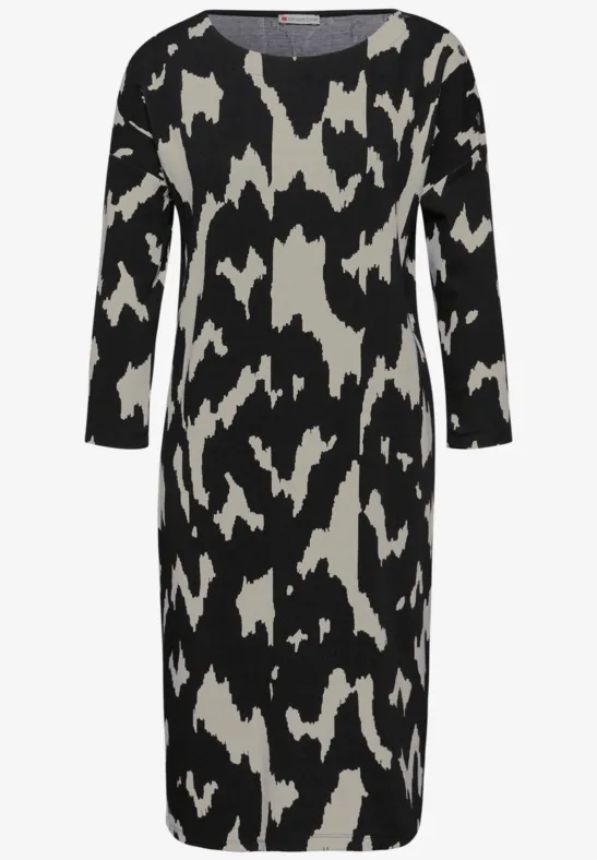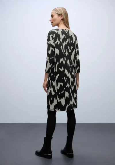De jacquard jurk van Street One voor dames heeft prachtige details en een zacht draagcomfort. De boothals en een delicaat knoopdetail op de schouder geven de knielange jurk een speciale touch. Dankzij het comfortabele gevoel wordt het al snel een favoriet in je garderobe.