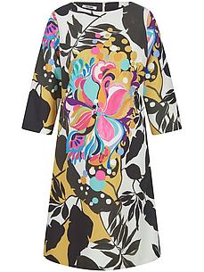 Jersey jurk van PAGANNE met een boothals en 3/4 mouwen. Figuurvullend model met een ritssluiting aan de achterkant en zakken in de zijnaden. De exclusieve print in een mix van zwart en wit met kleurrijke bloemmotieven is zorgvuldig aangebracht op elke jurk. Van 88% polyester, 12% elastaan. De lengte is ca. 100 cm. Deze jersey jurk is machinewasbaar. wasbaar tot 30°. chloorbleken niet mogelijk. koud strijken. chemische reiniging. drogen in de droger niet mogelijk. 36, 38, 40, 42