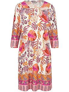 Jersey jurk Emma van GREEN COTTON. Met wauw-effect. Op kantoor of tijdens het winkelen met deze adembenemende en comfortabele favoriet met zijn expressieve, artistiek geplaatste bloemenprint en opvallende brede rand trekt u overal de aandacht. Vrouwelijk en modern, in een soepelvallend, iets korter model met wijde ronde hals en aangerimpelde 3/4-mouwen met decoratieve bindbandjes aan de uiteinden. Nonchalante steekzakken. 100% katoen, GOTS-gecertificeerd. Lengte ca. 95 cm. Deze jersey jurk is machinewasbaar. wasbaar tot 40°. chloorbleken niet mogelijk. warm strijken. niet chemisch te reinigen. drogen in de droger niet mogelijk. 36, 38, 40, 42, 44, 46, 48, 50, 52