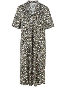 Jersey jurk “Gerda” van GREEN COTTON moderne look in een casual snit met een V-opening bij de opstaande kraag, iets langere, wijd uitgesneden 1/2-mouwen en schuine paspelzakken. De losse vorm garandeert nog meer comfort, terwijl de populaire millefleurs-print opvalt door zijn delicate vrouwelijkheid. 100% katoen (biologisch), GOTS-gecertificeerd. Lengte ca. 105 cm. Machinewasbaar. wasbaar tot 40°. chloorbleken niet mogelijk. warm strijken. niet chemisch te reinigen. drogen in de droger niet mogelijk. 36, 38, 40, 42, 50