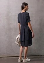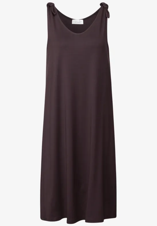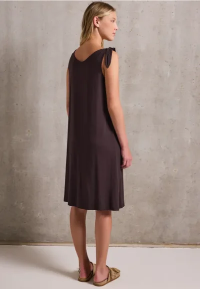 De jersey jurk van Street One Studio voor dames is uitgevoerd in een effen kleur met een geraffineerd knoopdetail op de bandjes. De ronde V-hals geeft het knielange model een vrouwelijke touch. De viscosemix met stretch biedt een figuurflatterende pasvorm.