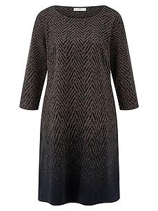 Jersey jurk van PETER HAHN zonder sluiting. Met ronde hals en 3/4-mouwen. Een perfecte jurk voor elke dag en elk figuur Ruimvallend, casual model met zakken in de zijnaden van heavy-jersey met dégradé zigzagdessin. 60% polyester, 38% katoen, 2% elastan. Elke jurk is uniek. Lengte ca. 100 cm. Machinewasbaar. fijnwas tot 30°. chloorbleken niet mogelijk. koud strijken. chemische reiniging. drogen in de droger niet mogelijk. 36, 38, 40, 42, 44, 46, 48, 52