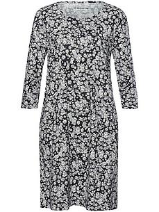 Jerseyjurk ‘Emma’ van GREEN COTTON in iets korter model. Prachtig vloeiend, knuffelig en uiterst comfortabel om te dragen. De wijde ronde halslijn, de speelse schouderruches en het strikje aan het uiteinde van de 3/4 mouwen zorgen voor een betoverende vrouwelijke look. Praktisch zijn de zakken in de zijnaad. Het klassieke madeliefjesdessin in een eigentijdse interpretatie bloeit in al zijn glorie op de donkere achtergrond en ziet er op iedere jurk anders uit. 100% katoen (biologisch), GOTS gecertificeerd. Lengte ca. 95 cm. Deze jersey jurk is wasbaar in de machine. wasbaar tot 40°. chloorbleken niet mogelijk. warm strijken. niet chemisch te reinigen. drogen in de droger niet mogelijk. 36, 38, 40, 42, 44, 46, 48, 50, 52