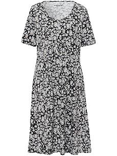 Jurk van PETER HAHN. Met verbrede schouders en omslag aan de korte mouwen. Vrolijke eyecatcher van lichte stof De veelkleurige borduurselprint ziet er op elke jurk net iets anders uit. Soepelvallend hemdblousemodel met blinde doorknoopsluiting, afgeronde zoom en zijsplitten. Van 100% viscose uit duurzame bosbouw. Gecertificeerd volgens Standard 100 by OEKO-TEX®. Lengte ca. 120 cm. Deze jurk is machinewasbaar. fijnwas tot 30°. chloorbleken niet mogelijk. warm strijken. chemische reiniging. drogen in de droger niet mogelijk. 36, 38, 40, 42, 44, 46, 48, 50, 52