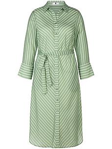 Jurk van ANNA AURA met 3/4-mouwen. Fashionster van vloeiende viscosemix met een figuurflatterend diagonaal streepdessin voor. Uitlopende overhemdblousestijl met doorlopende knoopsluiting, zakken in de zijnaden en zijsplitten. Kan los gedragen worden of ingesnoerd in de taille met de strikceintuur. Elke jurk is uniek. 60% viscose, 20% polyester, 20% polyamide. Lengte in maat 42 ca. 120 cm. Deze jurk is machinewasbaar. fijnwas tot 30°. chloorbleken niet mogelijk. koud strijken. niet chemisch te reinigen. drogen in de droger niet mogelijk. 40, 44, 46, 48, 50, 52, 54, 56