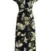 PAGANNE jurk met een boothals en 3/4-mouwen. Figuurvullend model met een ritssluiting achter en zakken in de zijnaden. Opvallend aantrekkelijk Een extravagante blikvanger met een zorgvuldig geplaatst, symmetrisch zwart-wit dessin met exotische motieven met randen aan de uiteinden. 88% polyester, 12% elastaan. Lengte ca. 100 cm. Deze jurk is machinewasbaar. wasbaar tot 30°. chloorbleken niet mogelijk. koud strijken. chemische reiniging. drogen in de droger niet mogelijk. 36, 38, 40, 42