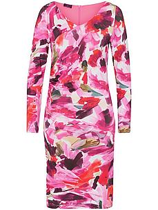 Jurk van TALBOT RUNHOF X PETER HAHN met lange mouwen en ritssluiting achter. Dit kleurrijke figuurwonder laat elke vrouw stralen Bijzonder elegante, aansluitende snit met een V-hals en aantrekkelijke plooien. Ondanks het smalle model zeer comfortabel dankzij hoogwaardige, elastische jersey. Door de exclusieve bloemenprint is iedere jurk uniek. Van 95% viscose, 5% elastan. LENZING™ ECOVERO™-viscose is een geregenereerde cellulosevezel. Voering 100% polyester. Lengte ca. 100 cm. Deze jurk is machinewasbaar. fijnwas tot 30°. chloorbleken niet mogelijk. koud strijken. chemische reiniging, veilig. drogen in de droger niet mogelijk. 42, 44, 46, 48