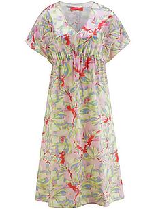 LAURA BIAGIOTTI ROMA jurk met loshangende schouders. Een vrouwelijke look die een hoog niveau van mode-expertise uitstraalt en uiterst comfortabel is om te dragen De print van bloemmotieven met de discreet geïntegreerde handtekening van de ontwerper ziet er bijzonder elegant uit op het prachtig gedrapeerde satijn. Gemaakt van 70% viscose, 30% zijde met een V-hals, hoge taille met elastiek en iets wijdere rok. Elke jurk is uniek. Lengte ca. 110 cm. Deze jurk is machinewasbaar. fijnwas tot 30°. chloorbleken niet mogelijk. koud strijken. chemische reiniging, veilig. drogen in de droger niet mogelijk. 36, 42, 46, 48