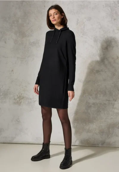 Deze knielange jurk van CECIL voor dames heeft glitterdetails voor net dat beetje extra. De sjaalkraag met tunnelkoord en de glitterboorden aan de mouwen zorgen voor sprankelende accenten. De zachte materiaalmix garandeert een comfortabel gevoel.