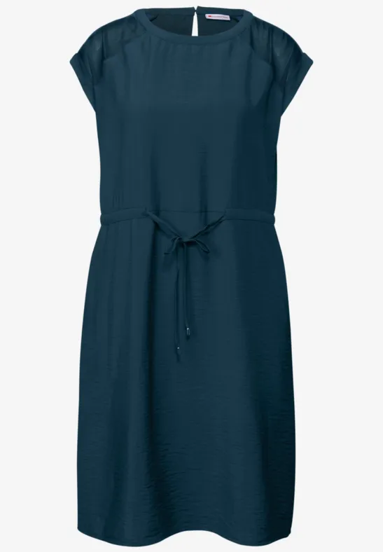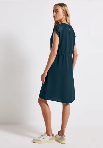 Deze knielange jurk van Street One voor dames heeft geraffineerde meshdetails en functionele accenten. De ronde halslijn, korte mouwen en taille met trekkoord zorgen voor een pasvorm op maat. De steekzakken maken deze jurk tot een praktische metgezel voor ontspannen zomerse looks.