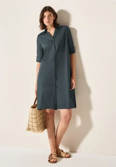 Deze knielange blousejurk van CECIL voor dames maakt indruk met zijn modieuze look. Gesmokte details geven de jurk een bijzondere touch, terwijl de katoenmix met stretch zorgt voor een comfortabele pasvorm. 3/4-mouwen met een omslag en steekzakken ronden het ontwerp af.