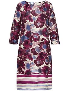 Jurk van PETER HAHN met ronde hals en 3/4-mouwen. Fashionstar in elegante look. Kokermodel van mooi vallende, bijzonder hoogwaardige stof met een mooie glans. De bijzondere bloemenprint met gestreept randdessin onderlangs maakt iedere jurk uniek. Met ritssluiting achter en steekzakken opzij. 53% cupro, 47% viscose. Gecertificeerd volgens Standard 100 by OEKO-TEX®. LENZING™ ECOVERO™ viscose is een geregenereerde cellulosevezel. Lengte ca. 100 cm. Machinewasbaar. fijnwas tot 30°. chloorbleken niet mogelijk. warm strijken. chemische reiniging. drogen in de droger niet mogelijk. 36, 38, 40, 42, 44