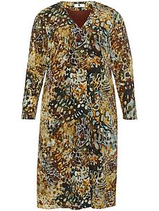 Jurk van EMILIA LAY zonder sluiting. Met een V-hals en lange mouwen. Modetopper met een exclusieve print in een fascinerende verscheidenheid aan kleuren op fijn weefsel in een hoogwaardige, natuurlijke kwaliteit Geschikt voor vele gelegenheden. Flatteus, ruimvallend model met een plooi onder de pas achter en afgeronde zoom. 57% zijde, 43% katoen. Voering van 100% polyester. Lengte in maat 42 ca. 120 cm. Deze jurk is machinewasbaar. wasbaar tot 30°. chloorbleken niet mogelijk. warm strijken. chemische reiniging, veilig. drogen in de droger niet mogelijk. 40, 42, 44, 46, 50, 56