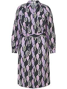 ANNA AURA jurk met 1/1 mouwen die kunnen worden opgerold. Fashionster in nieuwe kleuren voor de stad of een evenement De fascinerende print van gestileerde bladmotieven ziet er bijzonder elegant uit op de vloeiende, fijne stof. Losjes vallend overhemd met klepzakken op de borst en knoopsluiting over de hele lengte – met de strikceintuur kun je de jurk aan je figuur aanpassen. Elk model is uniek. 100% viscose. LENZING™ ECOVERO™ viscose is een geregenereerde cellulosevezel. Lengte in maat 42 ca. 140 cm. Deze jurk is machinewasbaar. fijnwas tot 30°. chloorbleken niet mogelijk. warm strijken. chemische reiniging. drogen in de droger niet mogelijk. 40, 42, 44, 46, 48, 50, 52, 54, 56