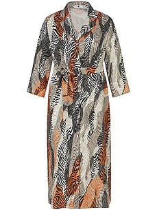EMILIA LAY jurk met een korte reverskraag en 3/4 mouwen die kunnen worden opgerold. Los model met een knoopsluiting over de hele lengte en steekzakken. De kleurrijke zebraprint op hoogwaardige, zomerse stof maakt elke jurk uniek. Kan met of zonder ceintuur worden gedragen. 60% katoen, 40% linnen. Lengte in maat 42 ca. 120 cm. Deze jurk is machinewasbaar. fijnwas tot 30°. chloorbleken niet mogelijk. warm strijken. chemische reiniging. drogen in de droger niet mogelijk. 40, 42, 44, 46, 48, 50, 52, 54, 56