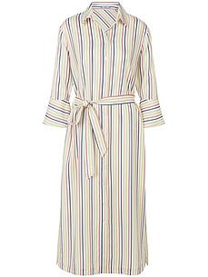 Jurk van DAY.LIKE met een in de breedte gestreepte volant aan de 3/4-mouwen. Summer in the city Het luchtige model, de soepele stof en afkledende strepen in zonnige kleuren maken van deze jurk een musthave voor de mooiste dagen van het jaar. Ruimvallend en luchtig in losjes vallende overhemdstijl met doorknoopsluiting, een plooi achter, naadzakken en zijsplitjes. Met of zonder de bindceintuur te dragen. Van 100% lyocell. Lengte ca. 120 cm. Machinewasbaar. wasbaar tot 30°. chloorbleken niet mogelijk. koud strijken. chemische reiniging. drogen in de droger niet mogelijk. 36, 38, 40, 42, 44, 46, 48