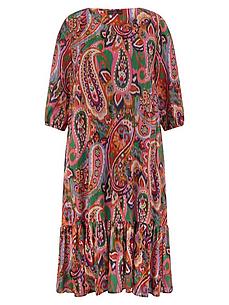 Jurk van EMILIA LAY met een elastische boord aan de 3/4-mouwen, zakken in de zijnaden en een aangezette strook bij de zoom. Modehit in fascinerende kleurenpracht zeer opvallend en heerlijk prettig in het dragen in wijde, ruimvallende snit Bovenste laag in lichte georgette van 100% viscose met paisleyprint, onderste laag in zachte jersey van 96% viscose, 4% elastan. Gecertificeerd volgens Standard 100 by OEKO-TEX®. Ieder model is uniek. Lengte in maat 42 ca. 120 cm. Machinewasbaar. fijnwas tot 30°. chloorbleken niet mogelijk. warm strijken. chemische reiniging. drogen in de droger niet mogelijk. 40, 42, 44, 46, 48, 50, 52, 54, 56