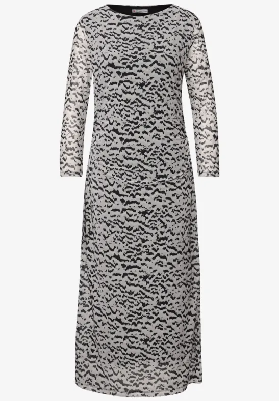 De Street One jurk van mesh voor dames met een all-over grafisch patroon is vrouwelijk en modern. De boothals en 3/4-mouwen voegen stijlvolle accenten toe, terwijl geraffineerde plooien in de taille je silhouet benadrukken. De luchtige netstof en midielengte maken het de perfecte jurk voor speciale gelegenheden of stijlvolle alledaagse looks.