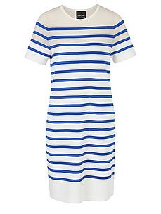 MARC CAIN jurk met 1/2 mouwen en een ronde halslijn. Dicht op het lichaam gesneden met geplaatste strepen die deze zomerse jurk een frisse kick geven. Rechte zoom. 88% viscose, 12% polyester. Lengte ca. 92 cm. Deze jurk is machinewasbaar. speciale fijnwas tot 30°. chloorbleken niet mogelijk. warm strijken. niet chemisch te reinigen. drogen in de droger niet mogelijk. 36, 38, 40
