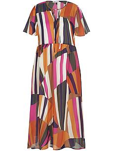 Jurk van ST. EMILE met halve vleugelmouwen. Een fashionstatement. Elegant en comfortabel tegelijk van elegant vloeiende crêpe van 100% viscose met grafische impressies in krachtige kleuren. Nauwsluitend model om aan te trekken met een aangehecht rokgedeelte met kleine plooitjes rondom voor een zwierige zoom. De jurk wordt geleverd met een aparte onderjurk van 100% viscose. Elke jurk is uniek. Gecertificeerd volgens Standard 100 door OEKO-TEX®. Lengte ca. 125 cm. Deze jurk is wasbaar in de machine. fijnwas tot 30°. chloorbleken niet mogelijk. warm strijken. chemische reiniging, veilig. drogen in de droger niet mogelijk. 36, 38, 40, 42, 44, 46, 48
