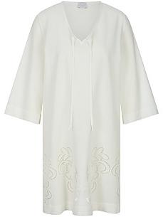 Jurkje van HUTSCHREUTHER licht transparante stof van 100% katoen met strikbandje bij de V-hals en wijde 3/4 mouwen met split. Opvallend mooi het gekrulde borduursel op de zoom. Lengte ca. 90 cm. Wij raden aan om deze jurk met de hand te wassen. handwas. chloorbleken niet mogelijk. warm strijken. niet chemisch te reinigen. drogen in de droger niet mogelijk. 36, 46