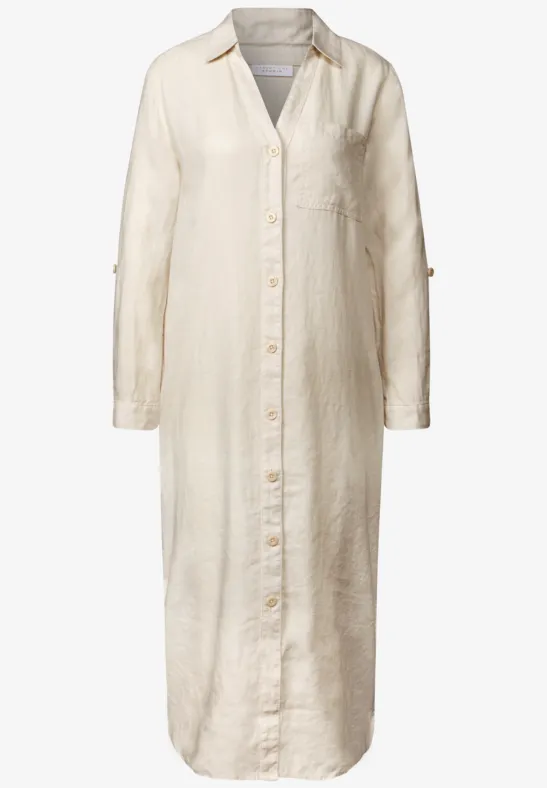 De Street One Studio midi-jurk voor dames heeft een overhemdkraag en borstzakken en steekzakken voor een casual look. Zijsplitten voegen een modieus accent toe, terwijl de aangename linnen stof zorgt voor een hoog draagcomfort. Dit maakt de jurk met lange mouwen een ideale keuze voor je zomerse looks.